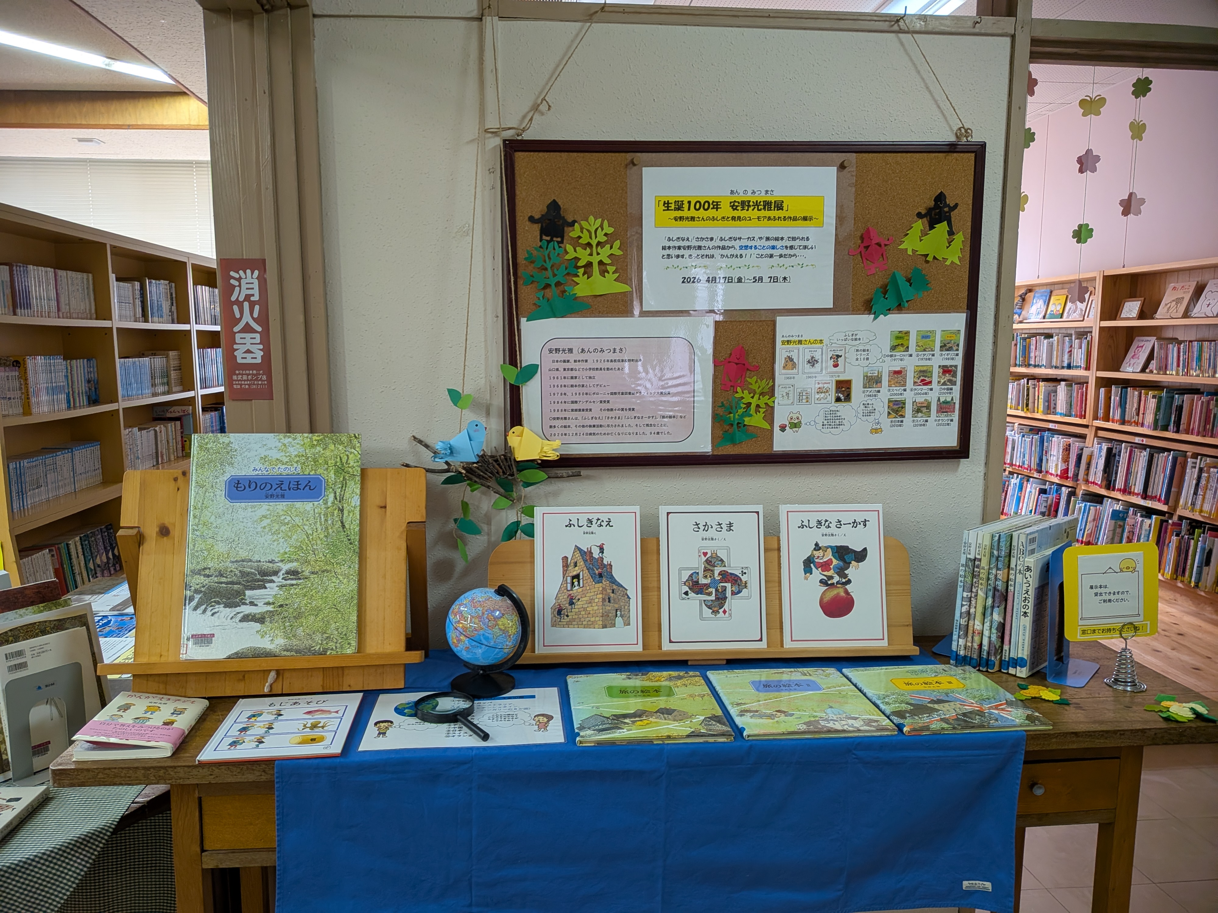 「生誕100年 安野光雅展」 4月23日(木)~5月12日(火)までは、「こどもの読書週間」となっています。そこで、町立図書館では、「生誕100年 安野光雅展」を5月7日(木)まで行っています。安野光雅さんのふしぎと発見のユーモアあふれる作品の展示をしていますので、この機会にぜひお立ち寄りください。